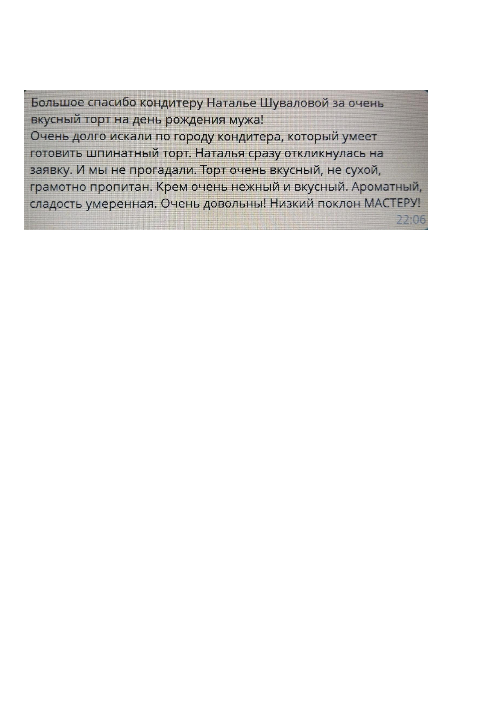 Проконсультирую или оформлю заказ на торт по телефону или через чат любого мессенджера.